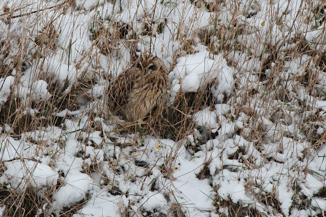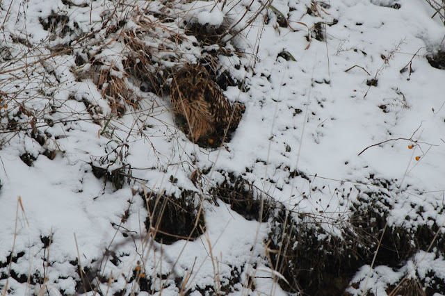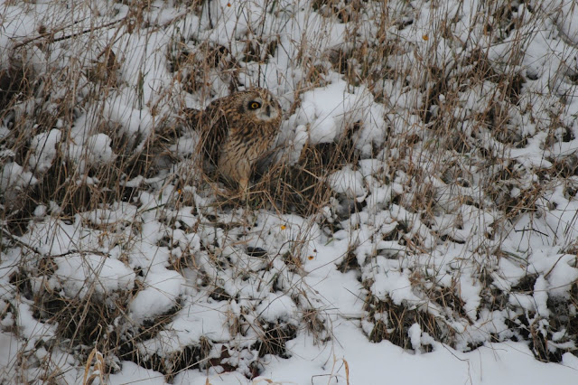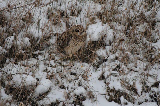 Yesterday (1-11-2011) I saw owls on the ground for the first time, I thought they might have been horned owls, but Rick, who is the person to go to for identifying, says he thinks they are more of the short eared owls. They were so camouflaged that I was sitting in front of one and didn't see it for a long time, it must have moved and caught my eye, after I saw that one I saw another, know I will look even harder to spot those on the ground the next time. Susie