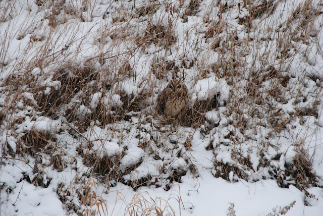 Yesterday (1-11-2011) I saw owls on the ground for the first time, I thought they might have been horned owls, but Rick, who is the person to go to for identifying, says he thinks they are more of the short eared owls. They were so camouflaged that I was sitting in front of one and didn't see it for a long time, it must have moved and caught my eye, after I saw that one I saw another, know I will look even harder to spot those on the ground the next time. Susie